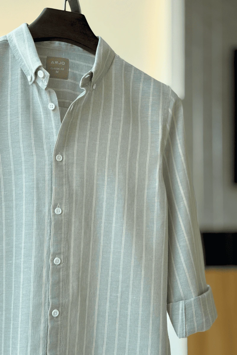 The Light Sage Green With White Stripes Shirt from Arjo is the perfect choice for effortless summer style. Crafted for comfort and breathability, this lightweight shirt keeps you cool during warmer days. With its relaxed fit and timeless stripes, it’s ideal for both casual outings and laid-back occasions. If you're looking for premium Full-sleeve shirts for men in BD, this versatile piece is a must-have. Stay stylish and comfortable all season long with Arjo.