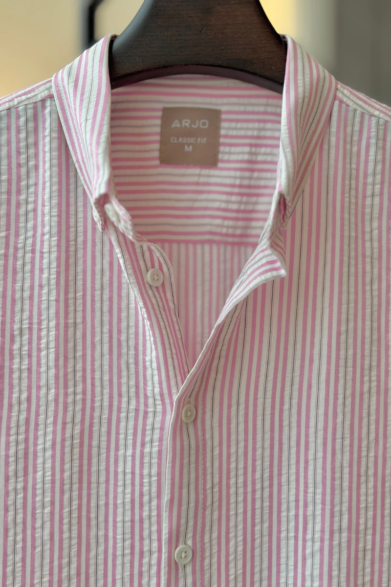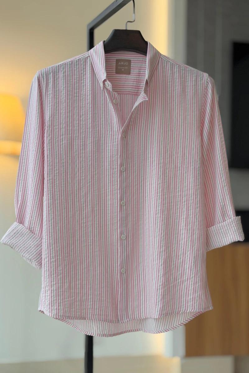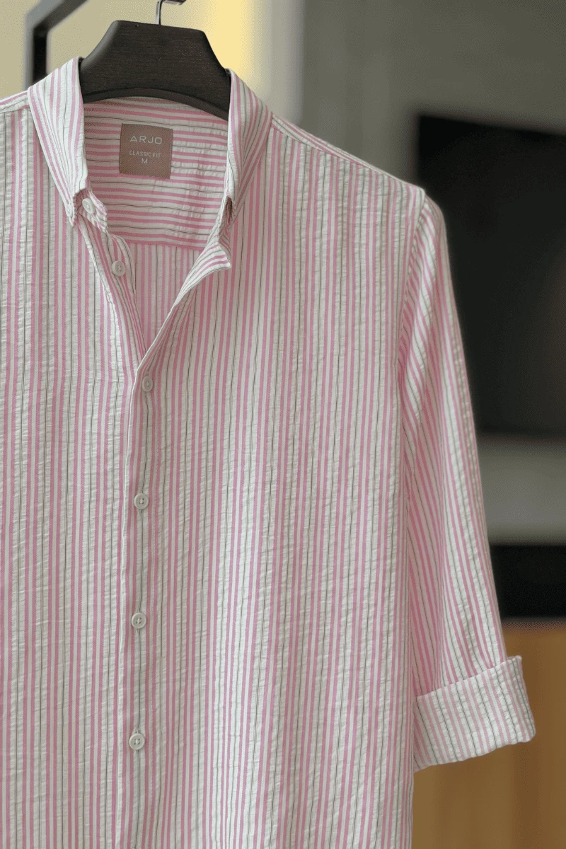 The Pink And White Striped Shirt from Arjo is the perfect choice for effortless summer style. Crafted for comfort and breathability, this lightweight shirt keeps you cool during warmer days. With its relaxed fit and timeless stripes, it’s ideal for both casual outings and laid-back occasions. If you're looking for premium Full-sleeve shirts for men in BD, this versatile piece is a must-have. Stay stylish and comfortable all season long with Arjo.