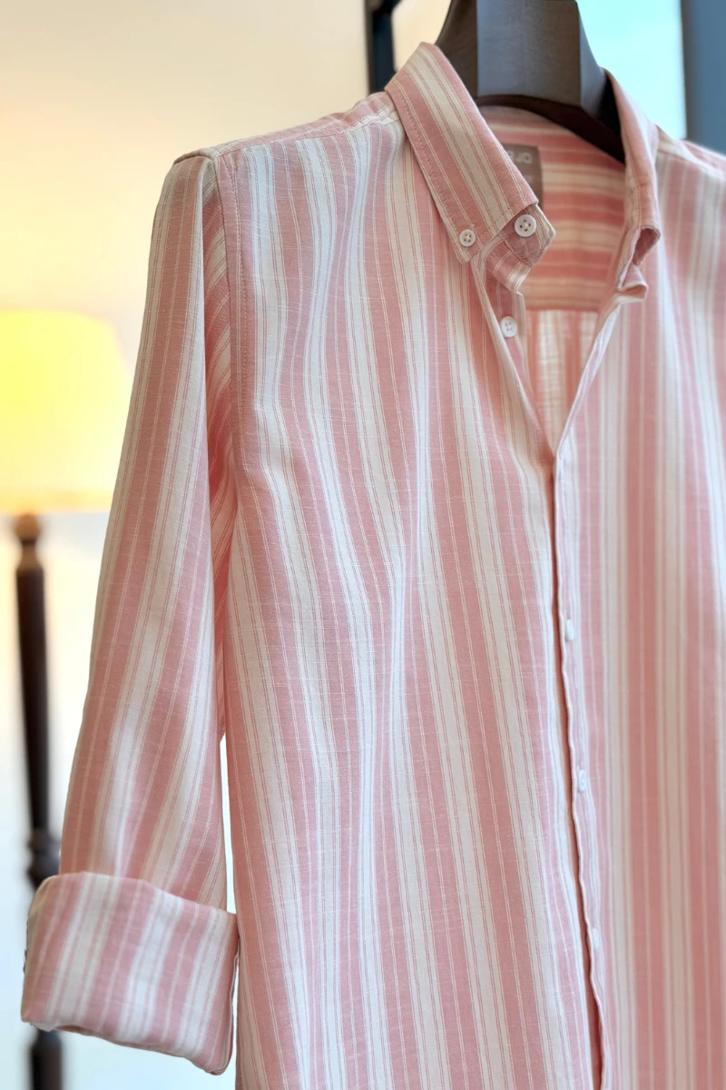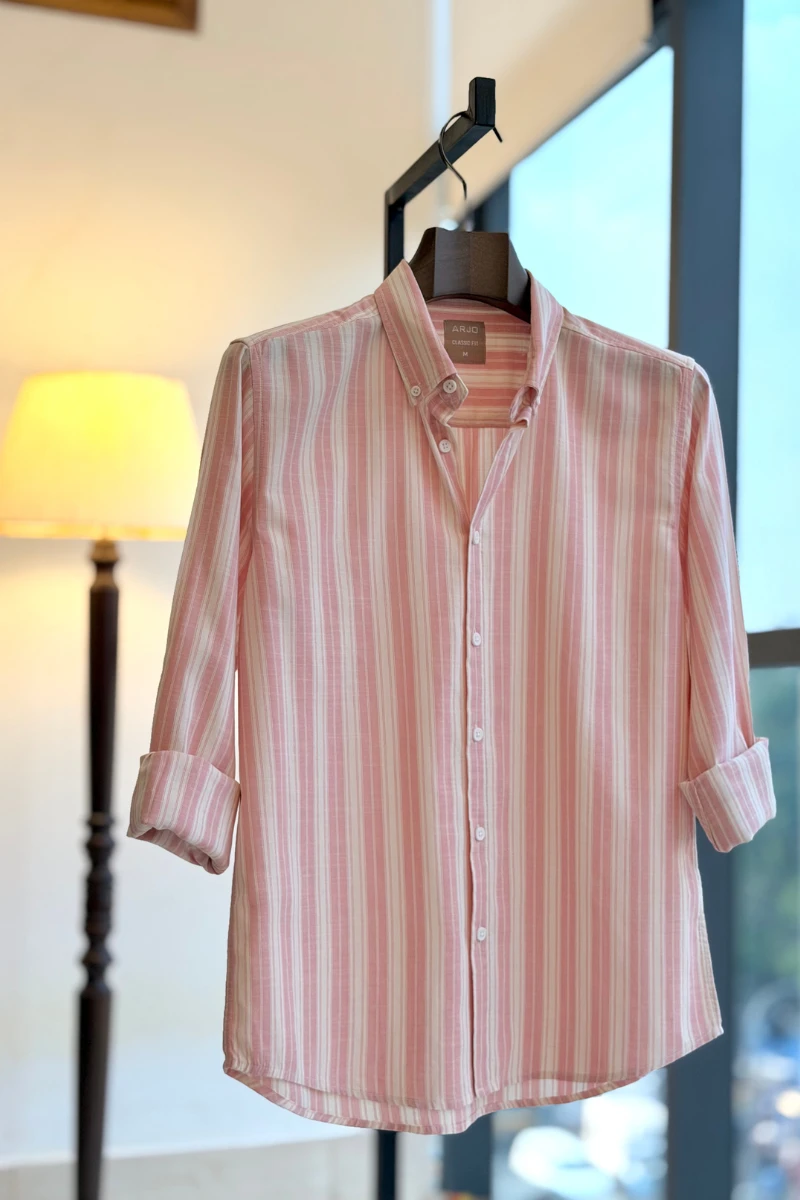 The Soft Pink and Off-White Vertical Stripes Shirt from Arjo is the perfect choice for effortless summer style. Crafted for comfort and breathability, this lightweight shirt keeps you cool during warmer days. With its relaxed fit and timeless stripes, it’s ideal for both casual outings and laid-back occasions. If you're looking for premium Full-sleeve shirts for men in BD, this versatile piece is a must-have. Stay stylish and comfortable all season long with Arjo.